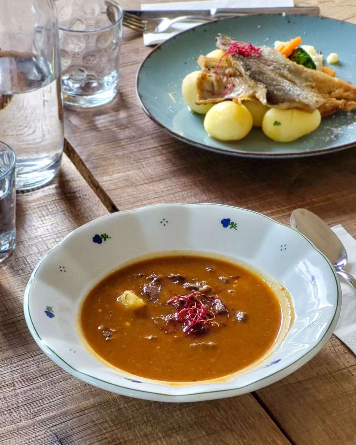 2. Presovaný bůček, bílé a červené zelí, bramborový knedlík345 Kč