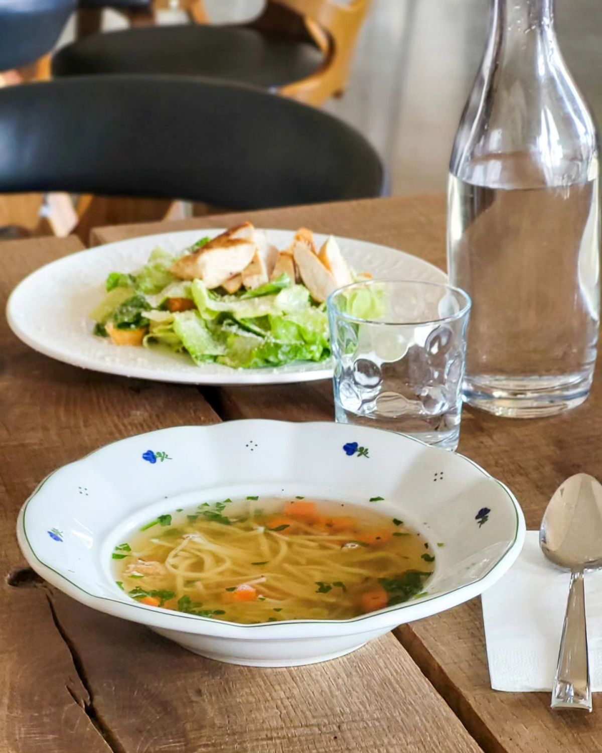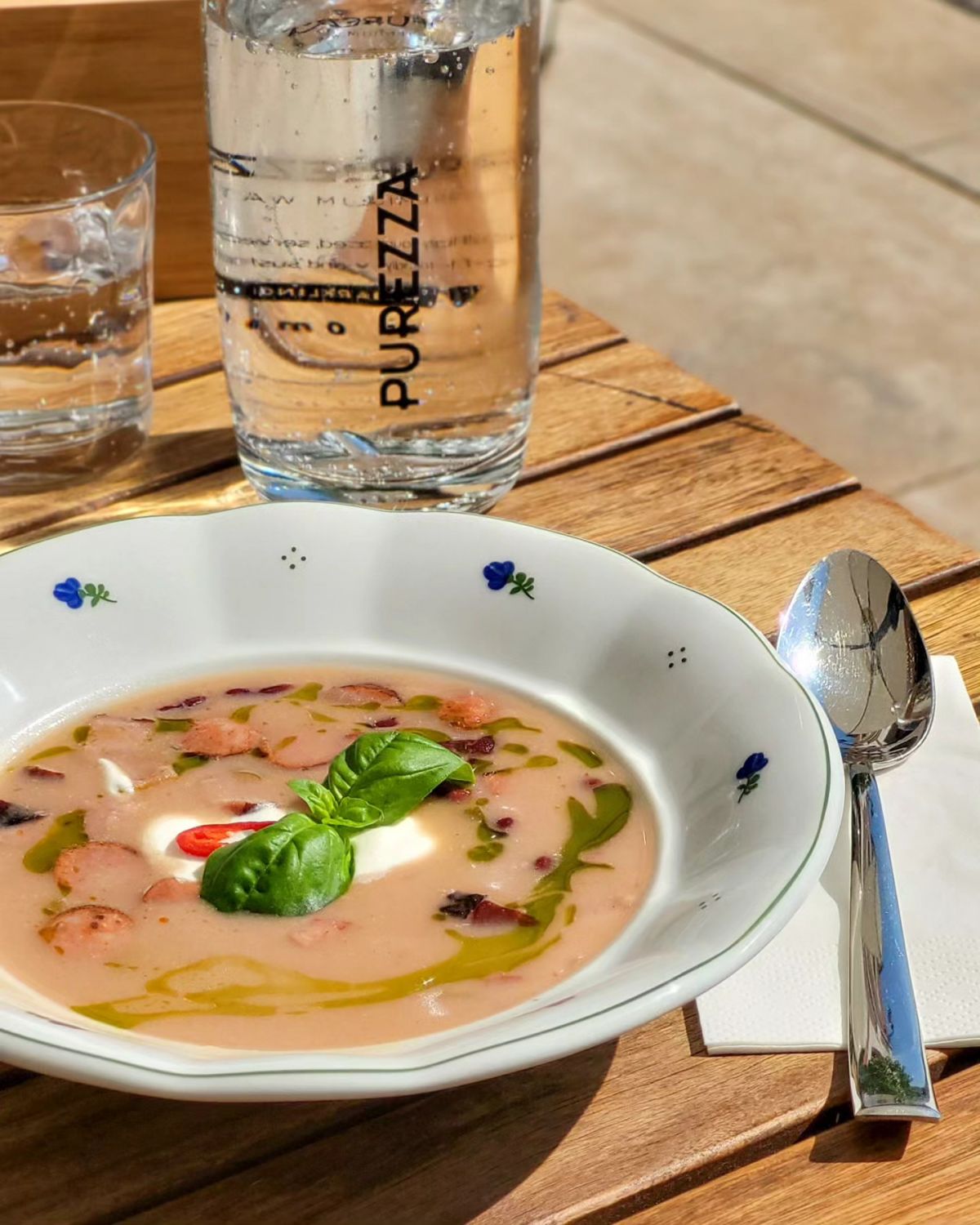 Soljanka (kuřecí vývar, maso, zelenina, nudle, petržel, rajčata)