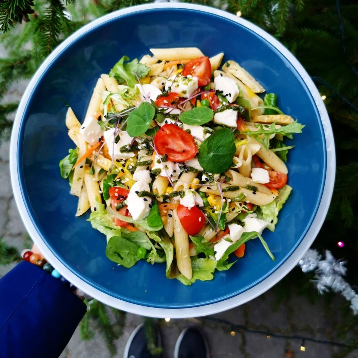 1. Salát s tarhoňou a hráškem, uzený jazyk, křenová mayo, mikrobylinky145 Kč
