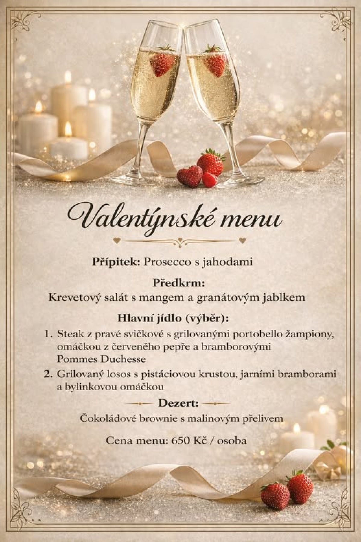 ⚠️ Nutná rezervace valentýnského menu. Bez rezervace nebude možné si menu dát.