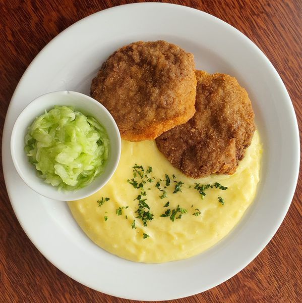 5. Kuřecí řízek z prsíček, bramborový salát 13710185 Kč
