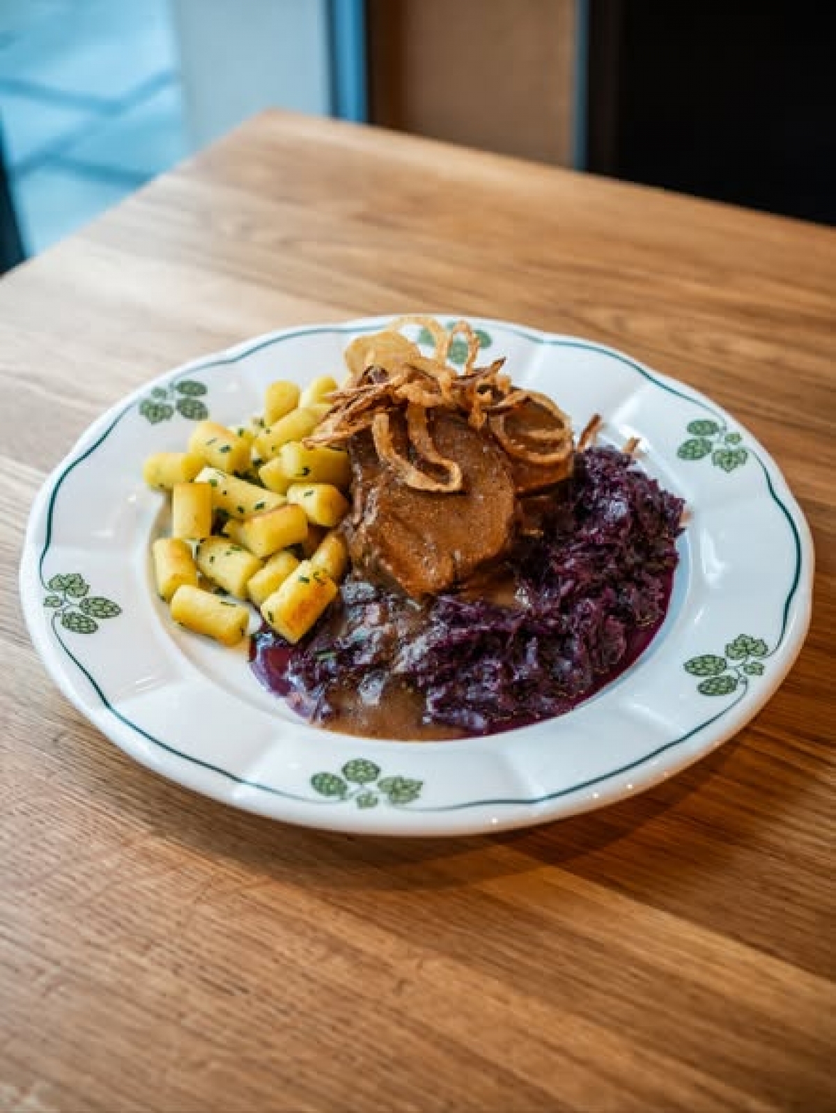 🥩 Pomalu pečená kančí plec červené zelí, bramborové nočky