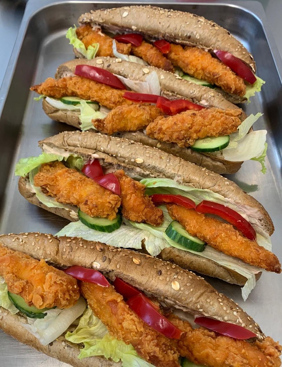1. Pita chléb plněný pikantními kuřecími kousky, zeleninovým salátem s bylinkovým dipem130 Kč