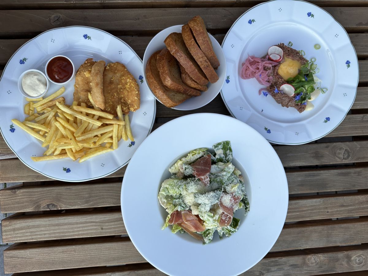 6. Kuřecí prsní řízek "Po Cestě" - Šťavnatý kuřecí řízek z marinovaného kuřecího prsa, ozdobený salátem a česnekovou majonézou, podávaný s grenaille bramborami nebo hranolkami199 Kč