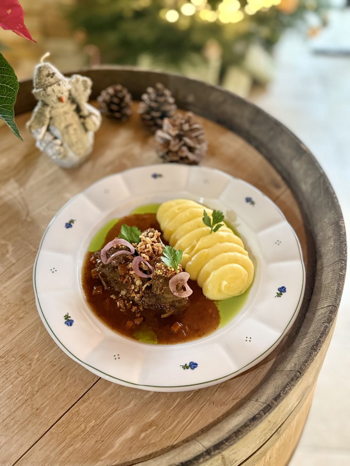 7. Vepřová panenka - Šťavnatá vepřová panenka s pikantní pepřovou omáčkou, podávaná s máslovými fazolovými lusky a restovanými grenaille bramborami s majonézou z medvědího česneku299 Kč