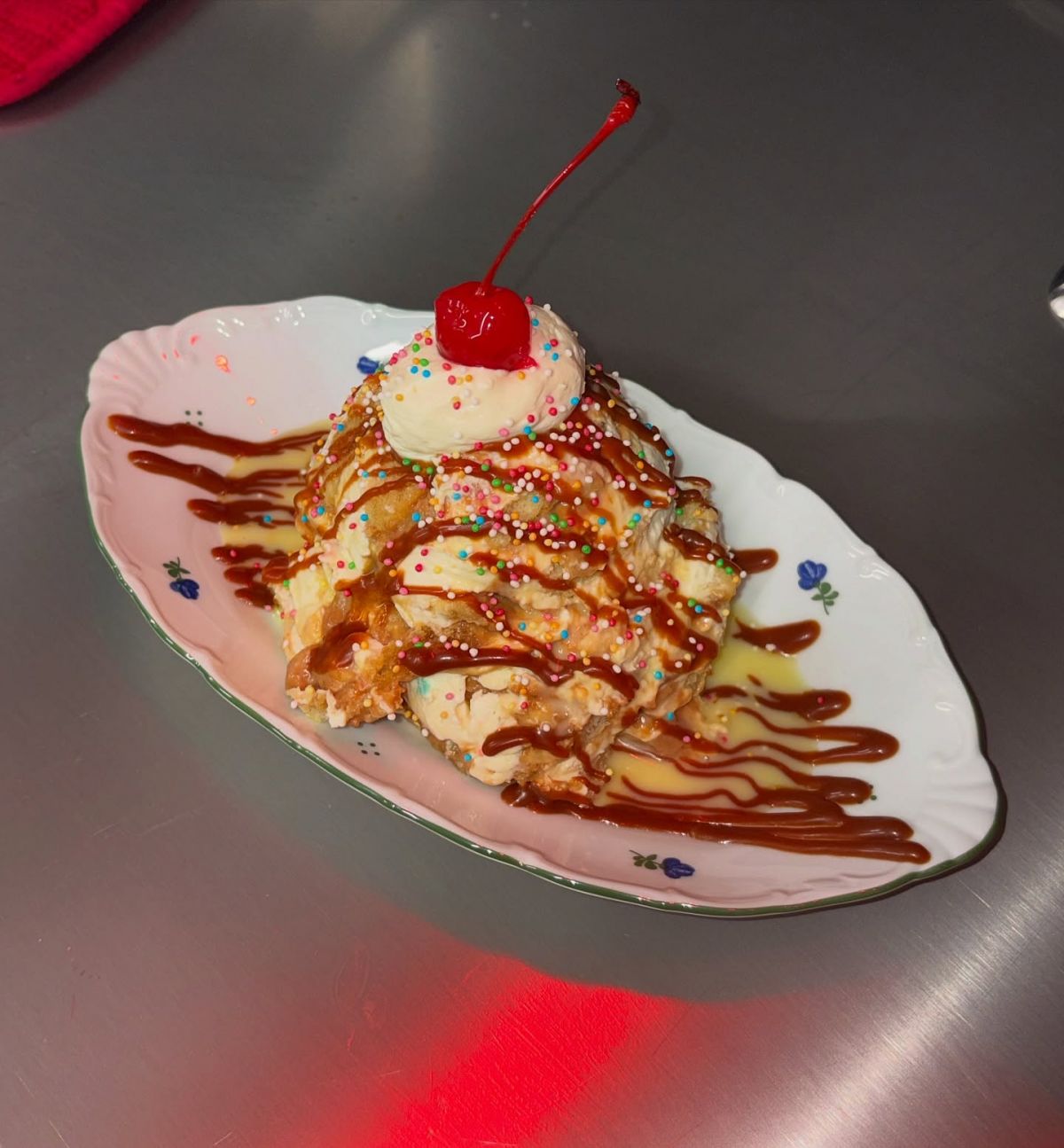 3. Dezert: Banana pudding, piškoty ve vaječňáku, banány v karamelu, vanilkový pudding, mascarpone, sprinkles, třešnička89 Kč