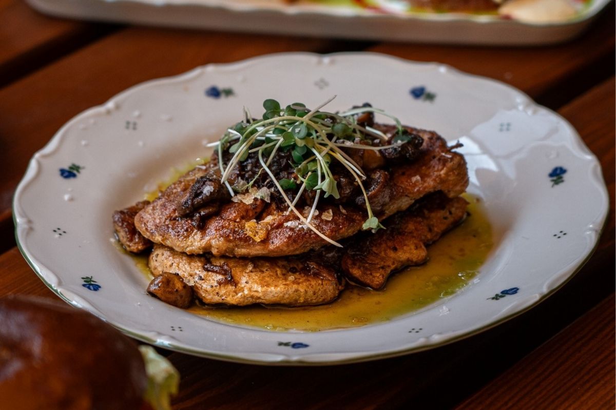 - Staročeské výpečky, pečené zelí, drubkový knedlík 200g205 Kč