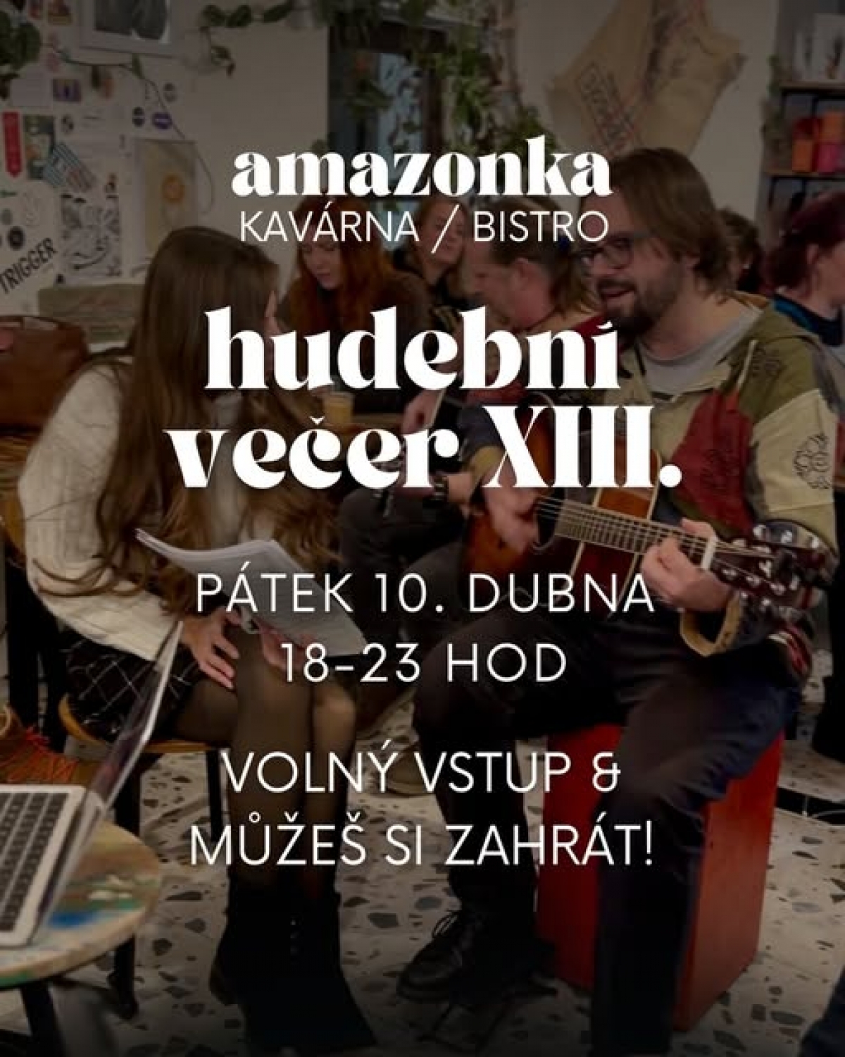 Přijď si zahrát, zazpívat, nebo jen tak posedět při živé hudbě. 🎸 Vstupné jako vždy zdarma. ✌️ K hraní / poslechu ti připravíme vymazlený drink, kafe i jídlo. 🥂🥙