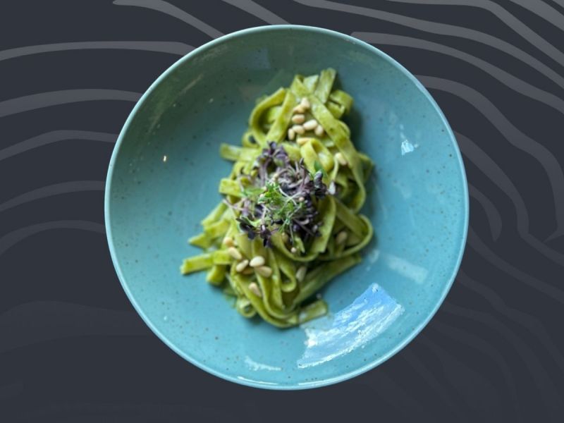 • 4. Tagliatelle e pesto basilico s bazalkovým pestem, parmazánem a piniovými oříšky