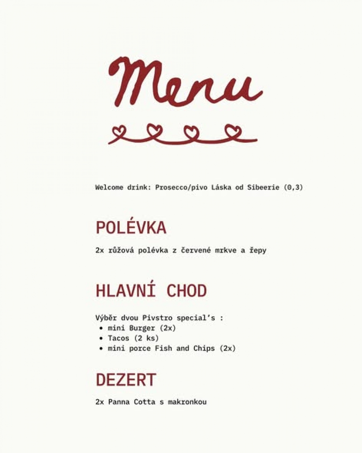 Valentýnské menu