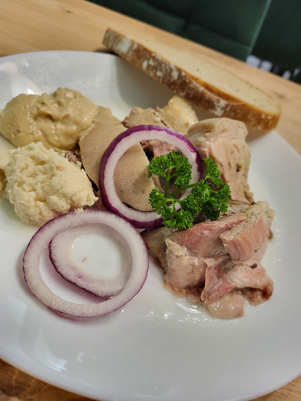 2. 120g Sekaná pečeně, bramborová kaše, zelný salátek 1, 3, 7135 Kč