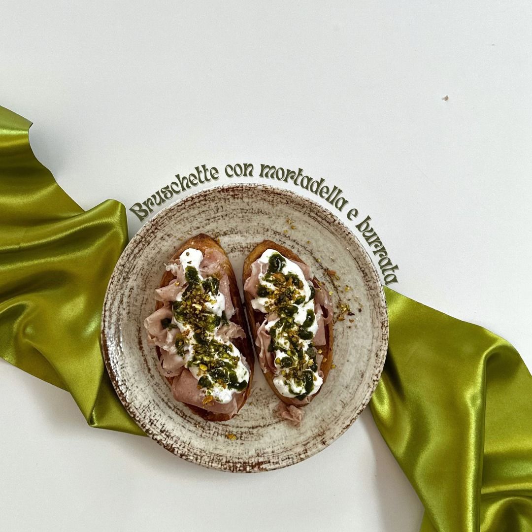 3. Pinsa Romana (Římská pinsa se základem z bazalkového pesta, mozzarellou, mortadellou a pistáciemi)185 Kč