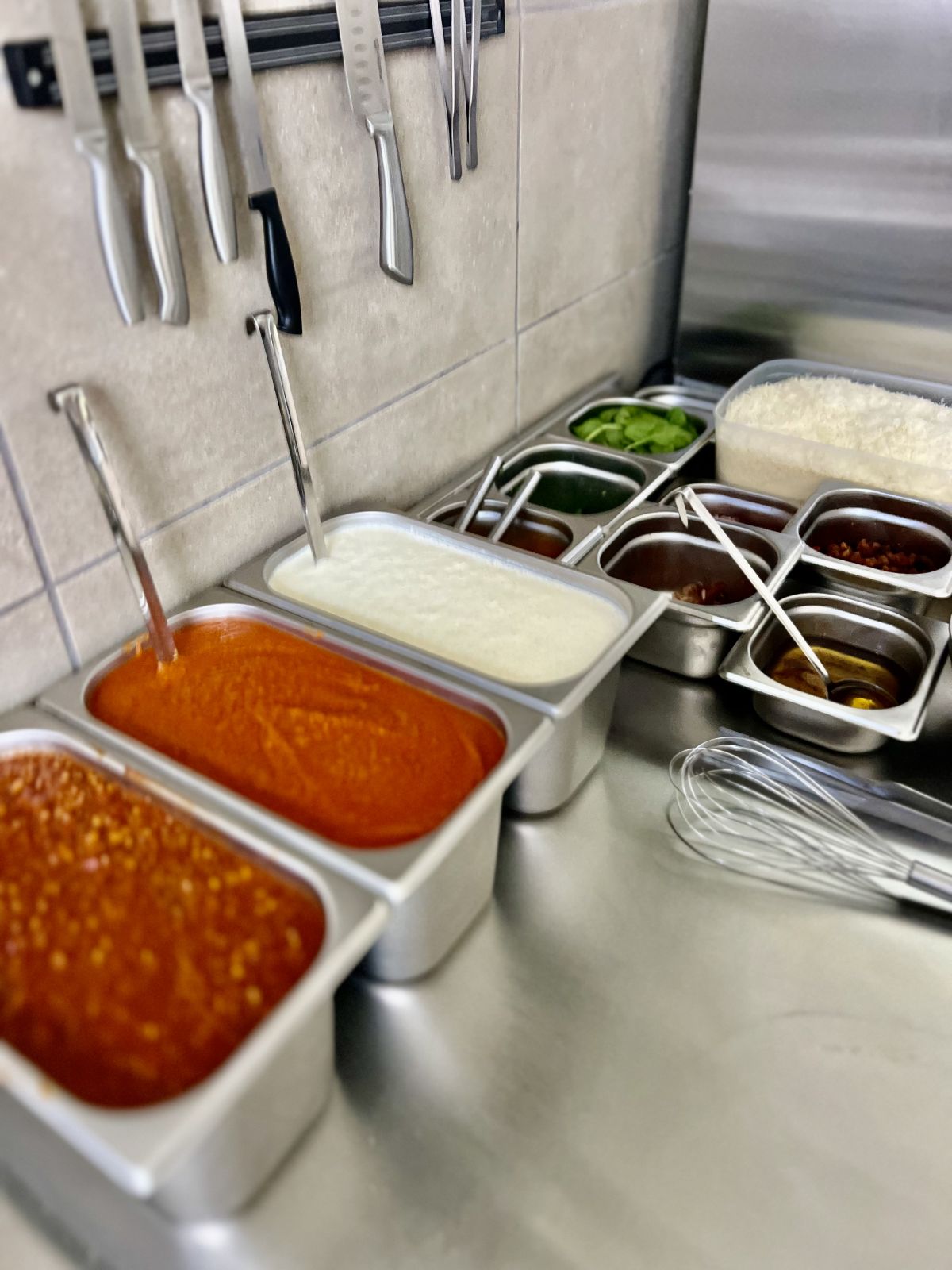 Lasagne alla Bolognese Tradiční italské lasagne s pomalu vařeným ragú z mletého hovězího a vepřového masa, vrstvami bešamelu a těstovin, zapečené s parmazánem. Alergeny: 1, 3, 7, 9165 Kč