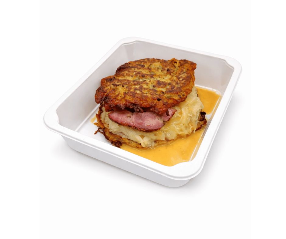 • 8. B4 150g Minisekaná se sýrem v anglické slanině, bramborová kaše, okurka