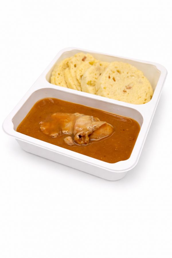 • 10. 150g Krkonošské hov. zástěry (závitek s vejci, párkem a žampiony), houskový knedlík