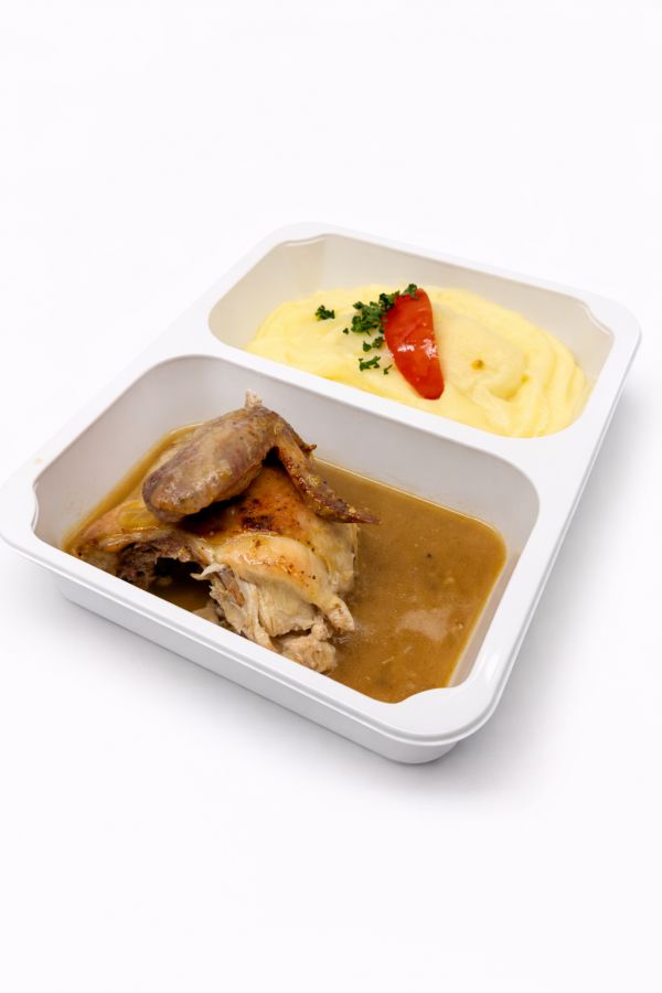• 5. B2 150g Kuřecí stehenní v mrkvi, vařený brambor