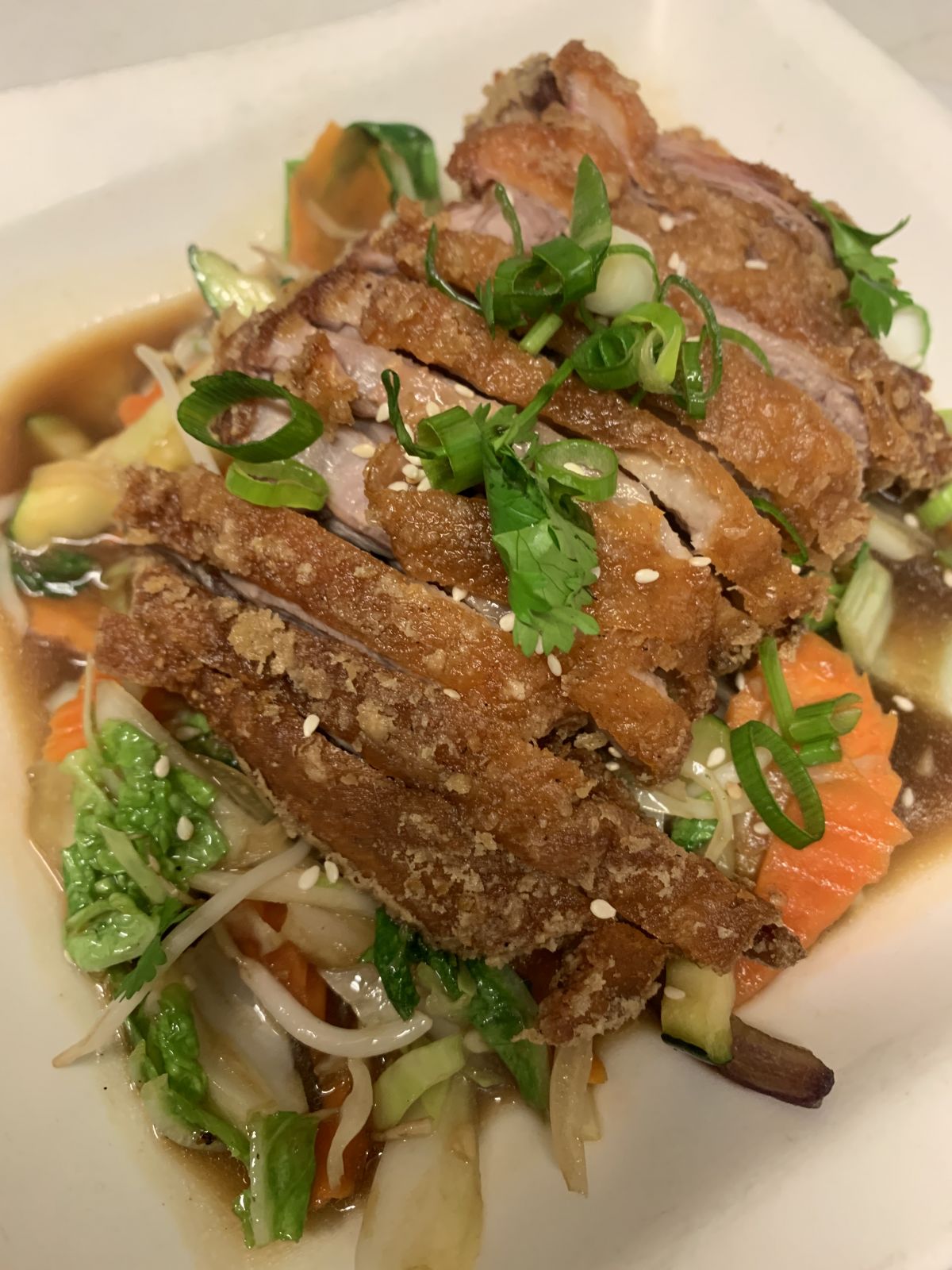 • 1. PET KARI DENG kachní prsa na thajském červeném kari, zeleninou, houbami, kokosovým mlékem, rýže 🌶