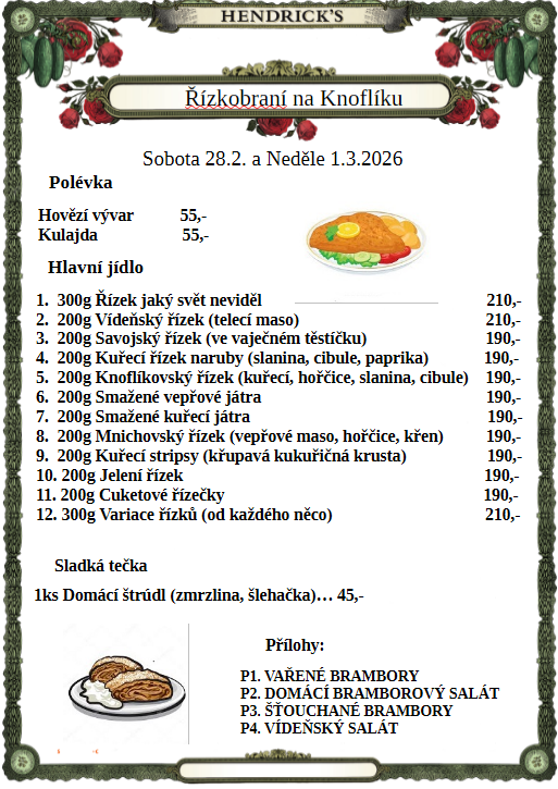 1. Holandský řízek, bramborová kaše165 Kč