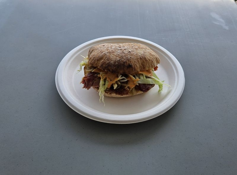 1. NOVINKA - MASÍK BURG (gril. maso ze selátka, pita chléb speciál, glazovaná cibulka, ledový salát, speciál dresing)160 Kč