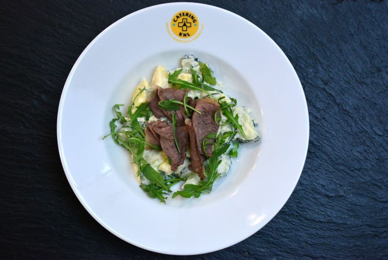 Kuřecí roláda se špenátem, šťouchaný brambor, salát 137