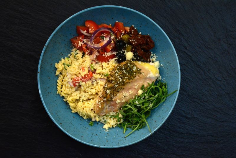 Speciál: Kuřecí kapsa se sušenými rajčaty batátové pyré a kadeřávek
