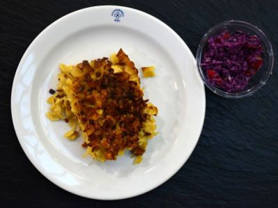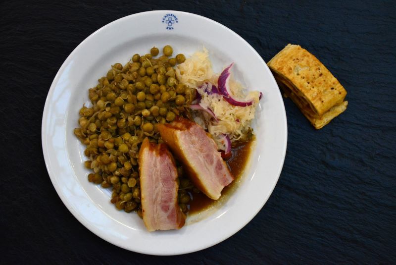 Vepřový vrabec, bramborový knedlík, červené zelí