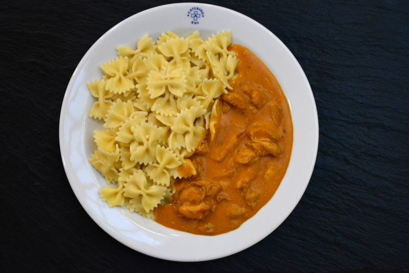 Kuře na paprice, těstoviny (houskový knedlík)
