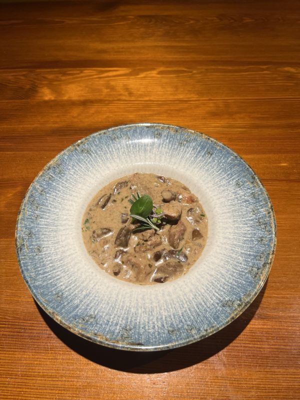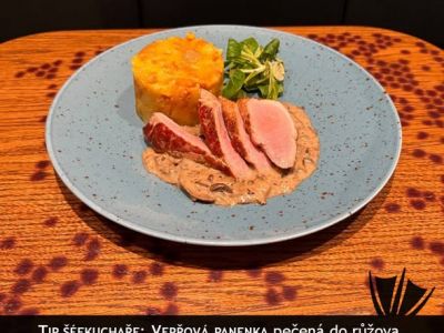 150g Špikovaná dančí kýta, šípková omáčka,