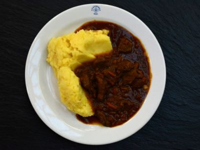 Maďarský hovězí guláš, houskový knedlík