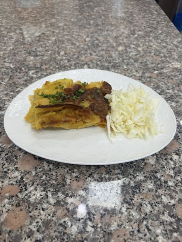 150g Gulášek z telecího masa, vařené těstoviny (kolínka) A:1, 3