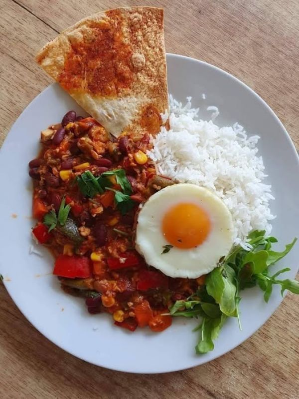 karí z červené čočky se špenátem a krůtími kousky a pohankou/ batáty 9