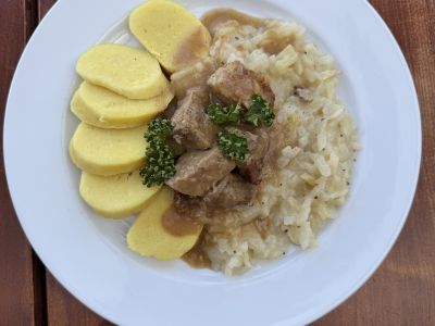 130g Rajská omáčka s masovými kuličkami, domácí knedlík