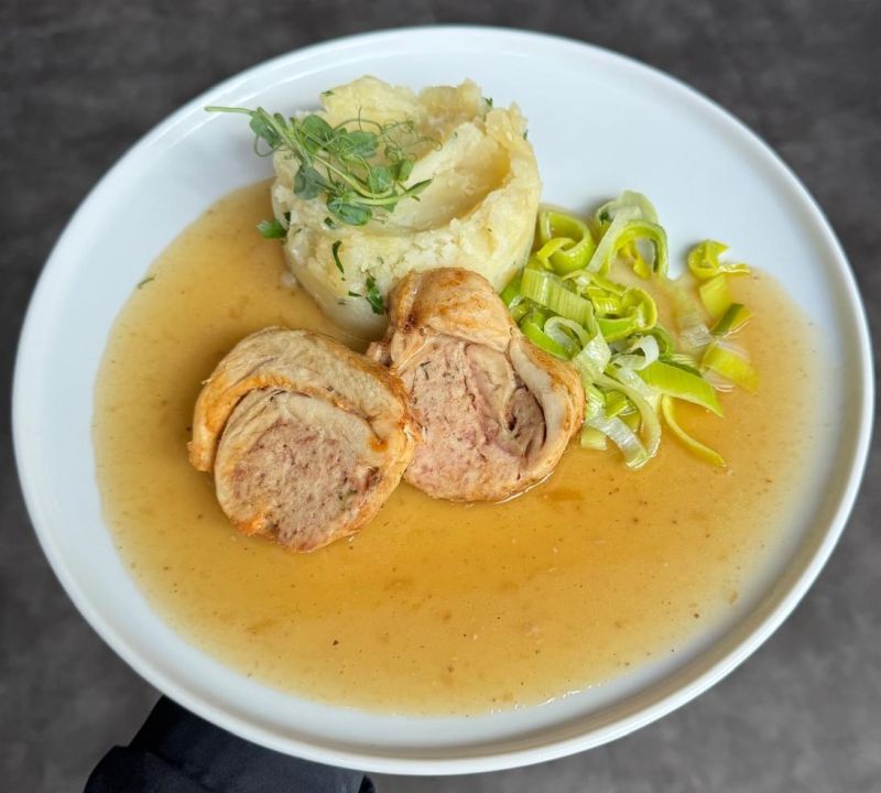 150g Smažený kuřecí řízek, bramborová kaše 1a, 3, 7, 9
