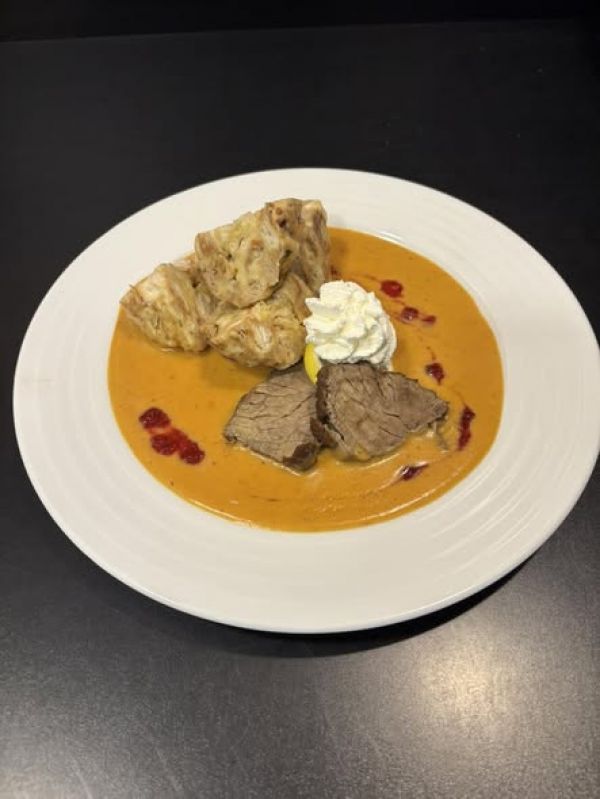 Domácí hovězí guláš, houskový knedlík nebo chléb