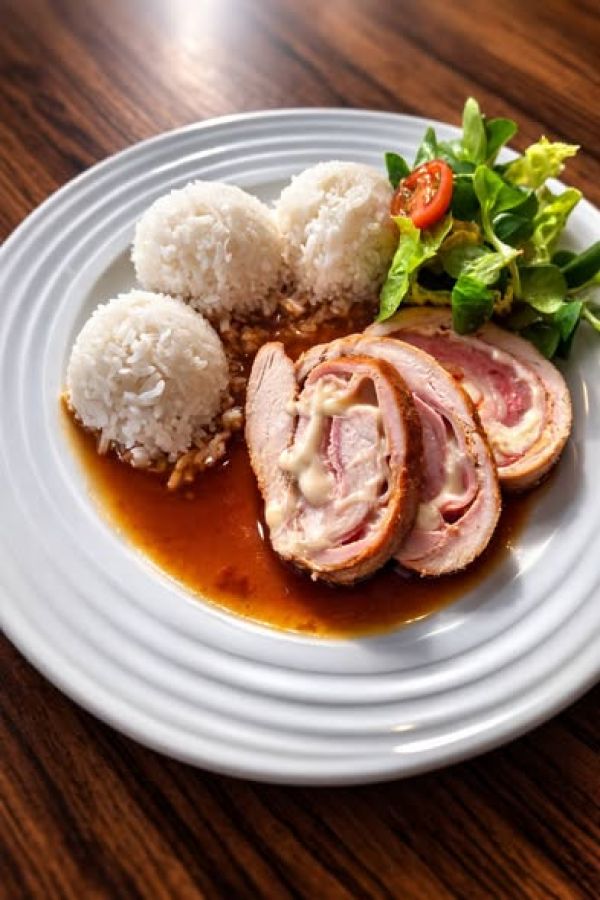 | 3. | Přírodní kuřecí kapsa se šunkou a sýrem, rýže | 164 Kč |