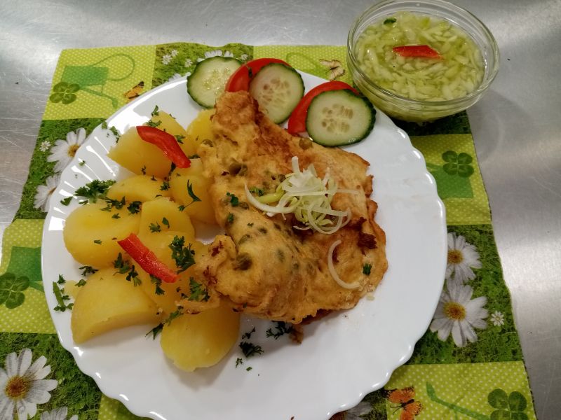 | 4. | 120g krůtí stripsy, brambory vařené, salát 137 | 135 Kč |