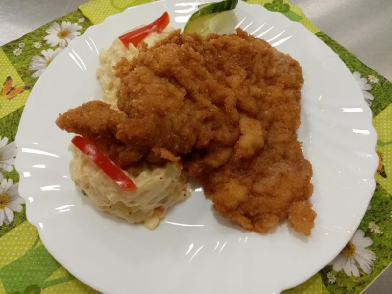 | 150g smažený kuřecí řízek + příloha dle výběru 137 | 150 Kč | |