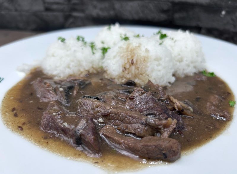 | 2. | 200g Filírovaný flank steak, pečené bylinkové grenaile, švestková omáčka | 259 Kč |