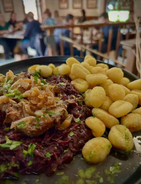 | 2. | 2. Pečená vepřová kotleta na cibulce a slanině, červené zelí, restované bamborové noky | 169 Kč |