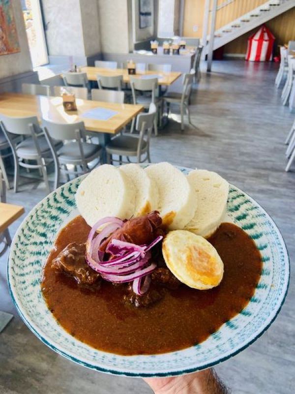 | 2. | 120g Hrachová kaše, uzená vepřová krkovička, vídeňská cibulka, sterilovaný okurek, chléb | 169 Kč |