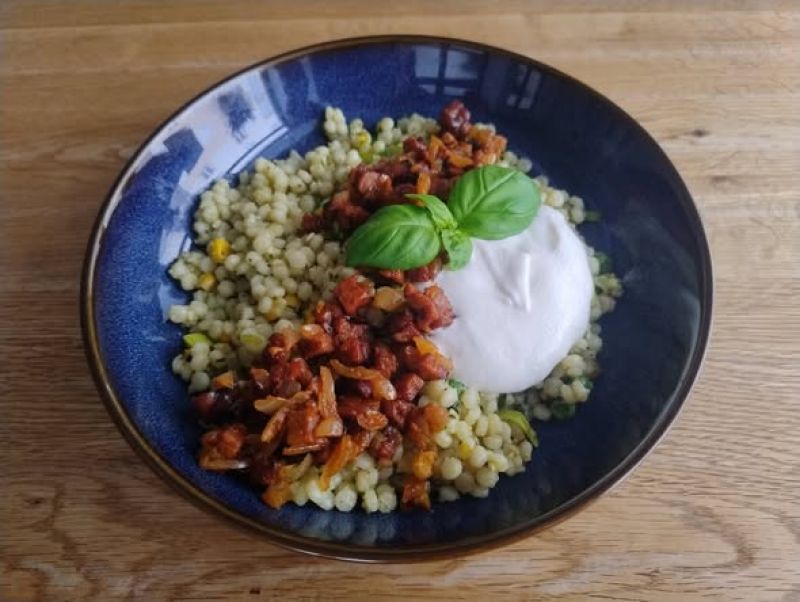 | 1. | Hrachová kaše, pečená zelenina, uzené tofu na cibulce (vegan) 69 | 160 Kč |