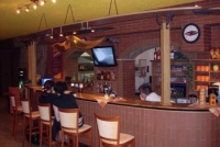 Barbecue burger s bram. véčky (Hovězí maso 180g, red cheddar, restovaná cibulka, rajče, nakládaná okurka, salát, barbecue dresink, bram. véčka)