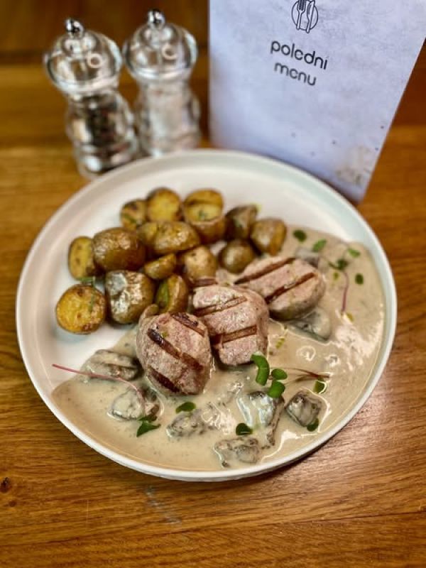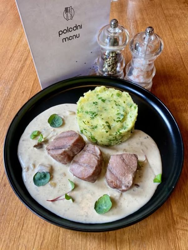 Vepřová pečeně, koprová omáčka, knedlík (brambory) 137