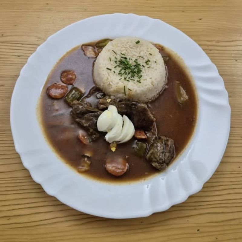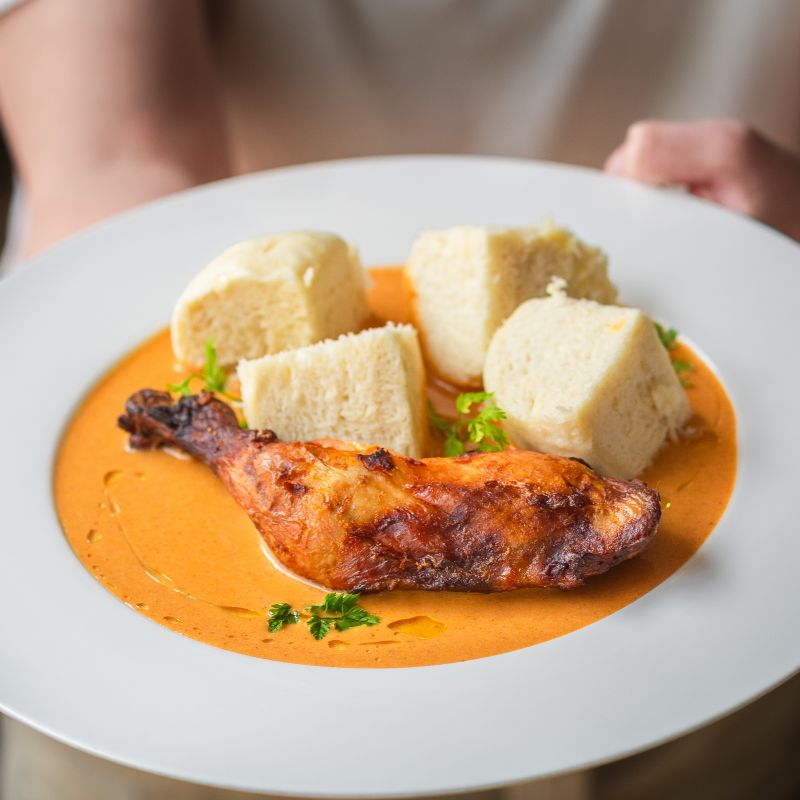 Menu 1:150g Segedínský guláš, houskový knedlík