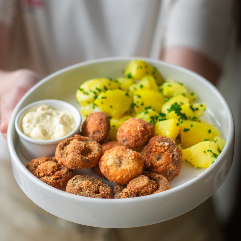 Smažený květák, vařené brambory s petrželkou, tatarská omáčkaA: 137