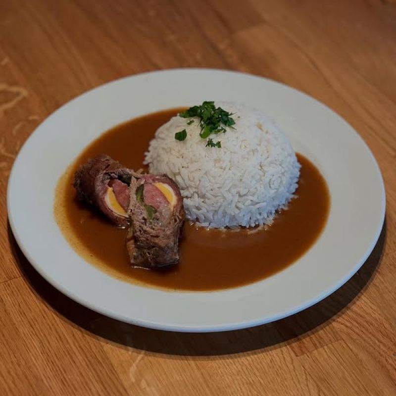 Balkánský kuřecí závitek, dušená rýže, ozdoba bezl. d. 7