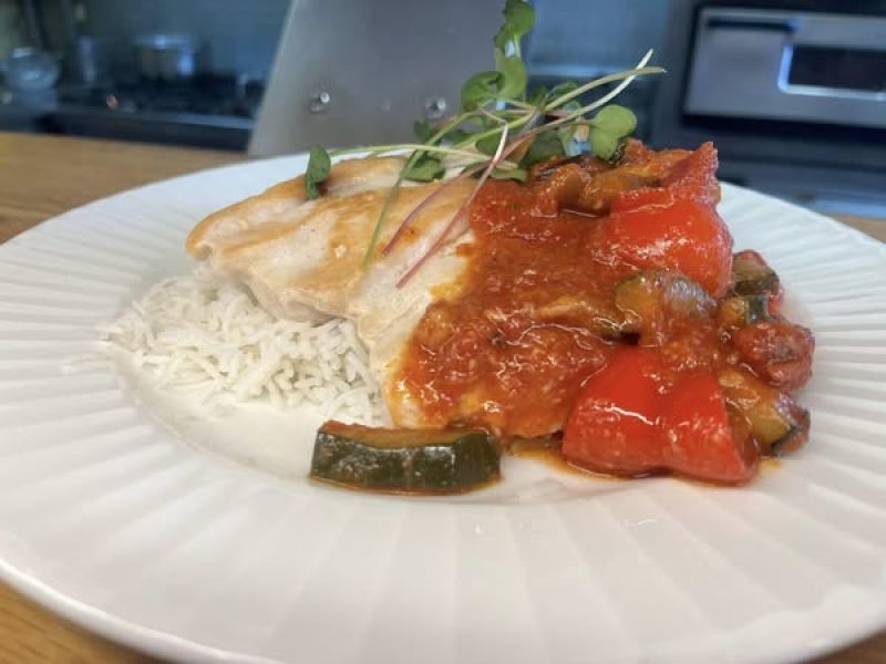 150g Indická tikka masala (jemně pikantní omáčka se zázvorem, směsí koření, jogurtem, rajčaty a grilovanými kousky marinovaného kuřete) podávané s dušenou jasmínovou rýží, zdobené bylinkami
