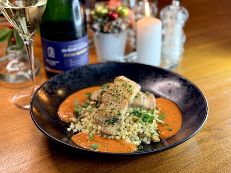 Grilované filátko z okouna, pečené grenaille, zeleninový ratatouille