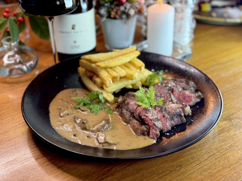 Náš tip: Rump steak s grilovanou zeleninou a pepřovou omáčkou