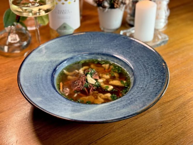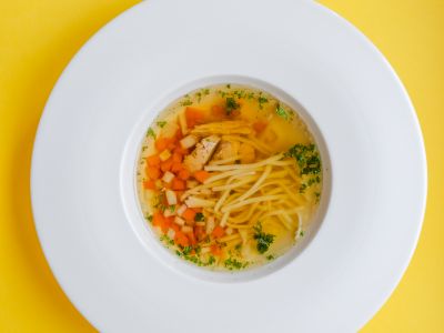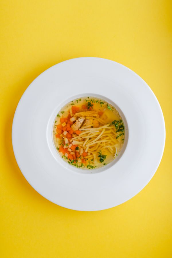 Drůbeží vývar s masem, zeleninou a smaženým hráškem (1, 3, 7, 9)